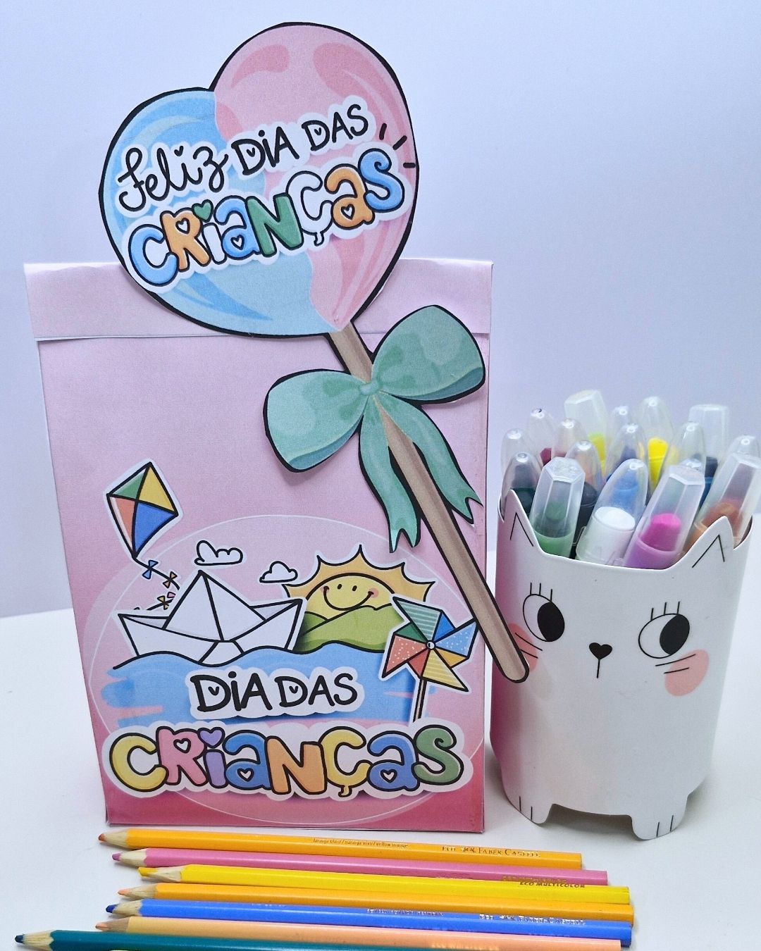Nossa Caixinha vem com uma arte lúdica e colorida, perfeita para presentear os pequenos com doces, lápis, brinquedinhos ou lembranças criativas. 🌈✨