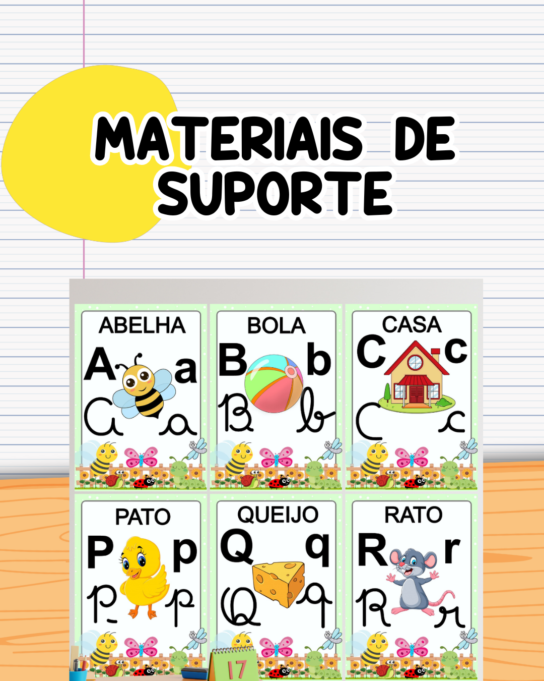 Materiais de suporte: alfabetos, números, recursos para o professor