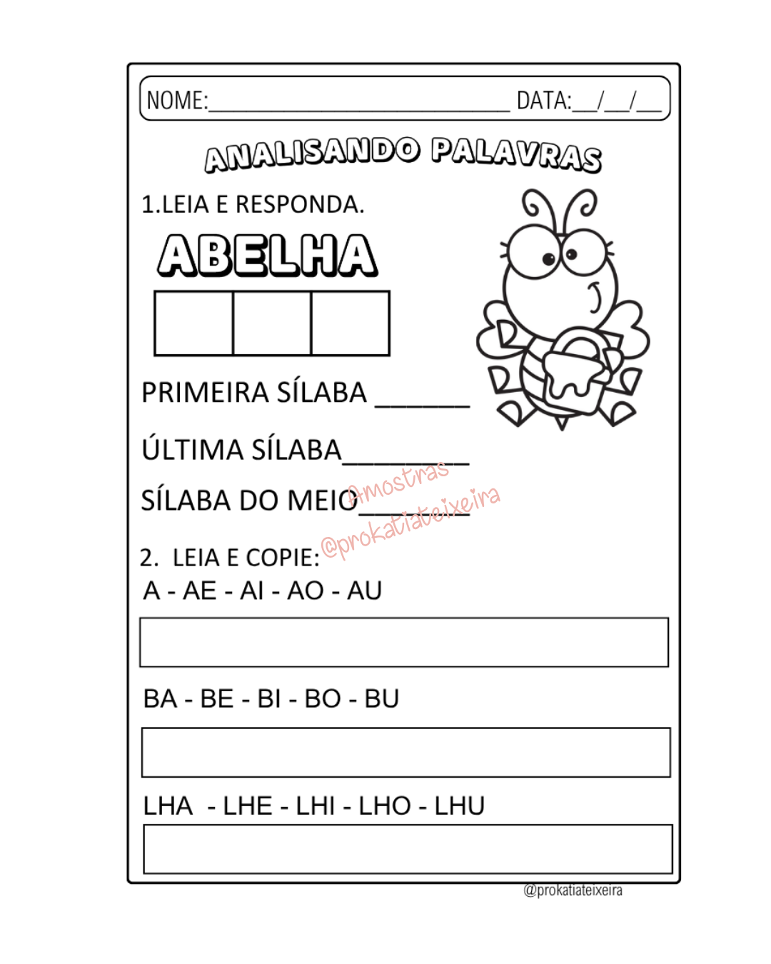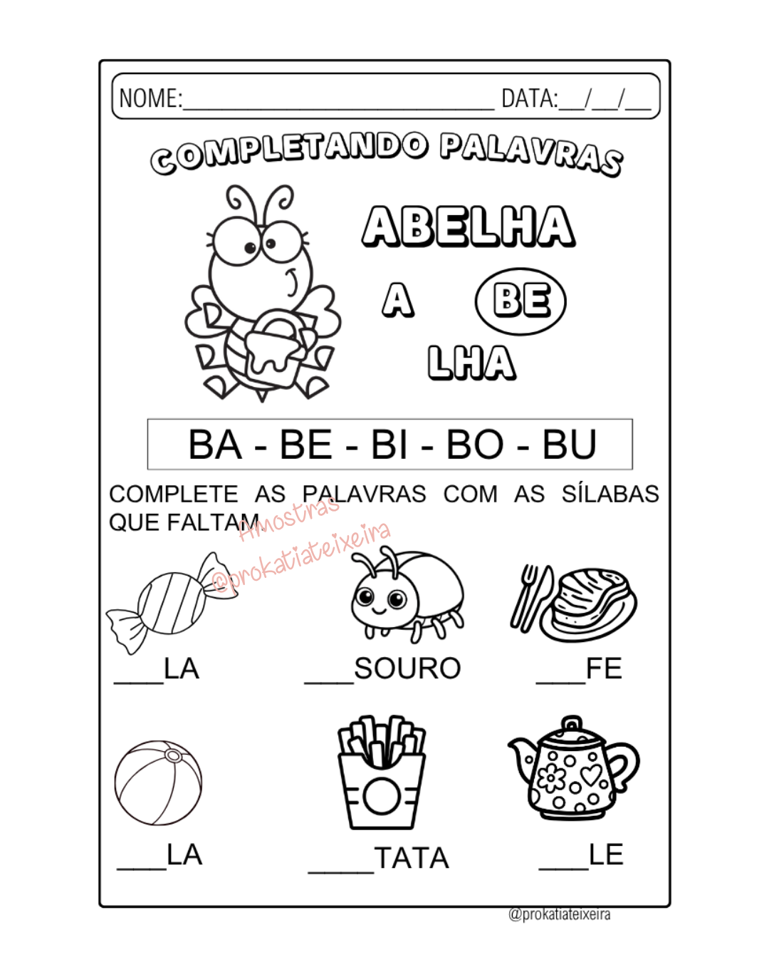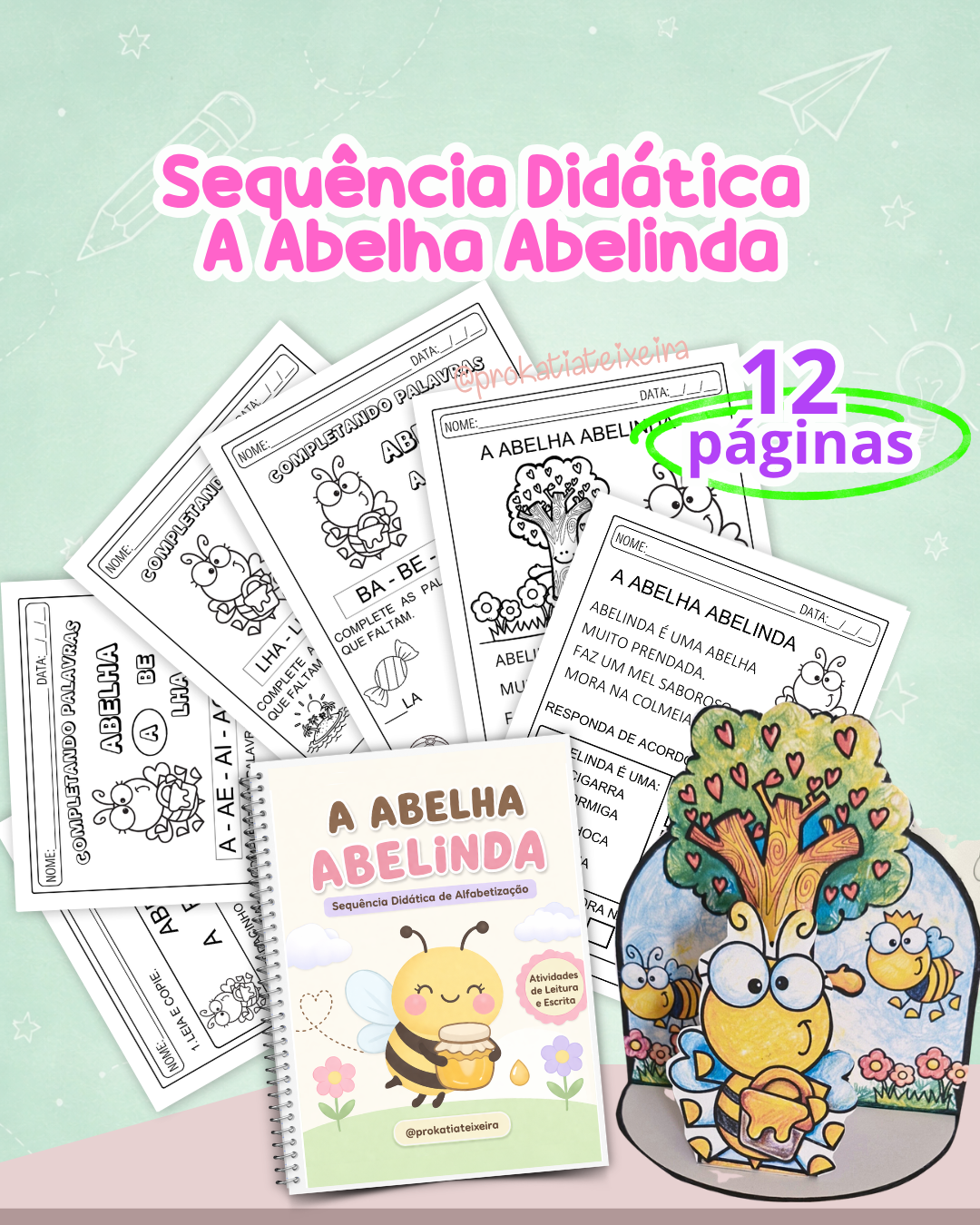 Sequência didática completa com 12 páginas para alfabetização inicial 🐝✨