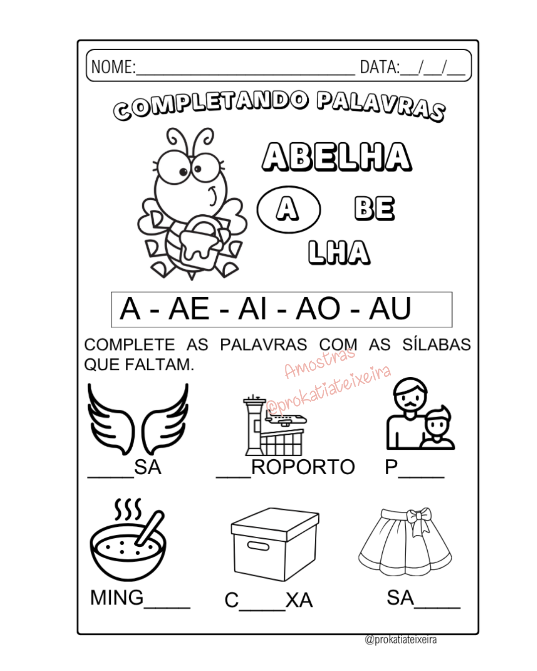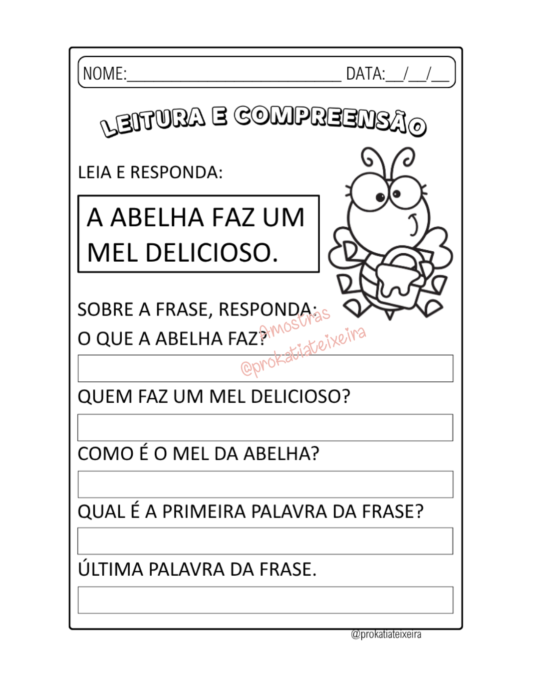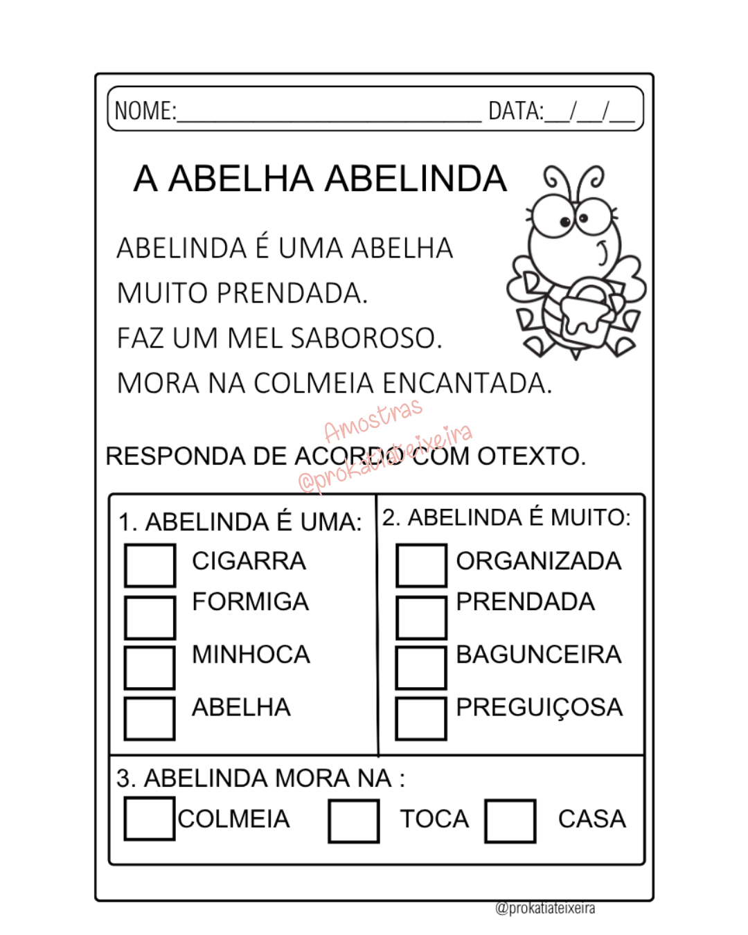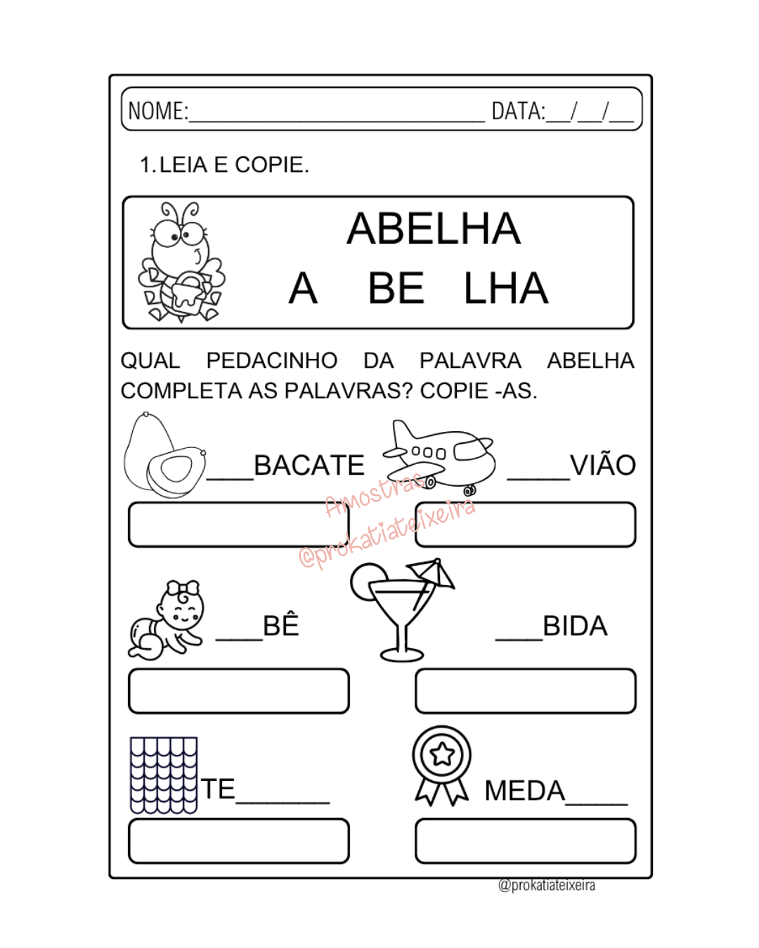 Sequência didática completa com 12 páginas para alfabetização inicial 🐝✨