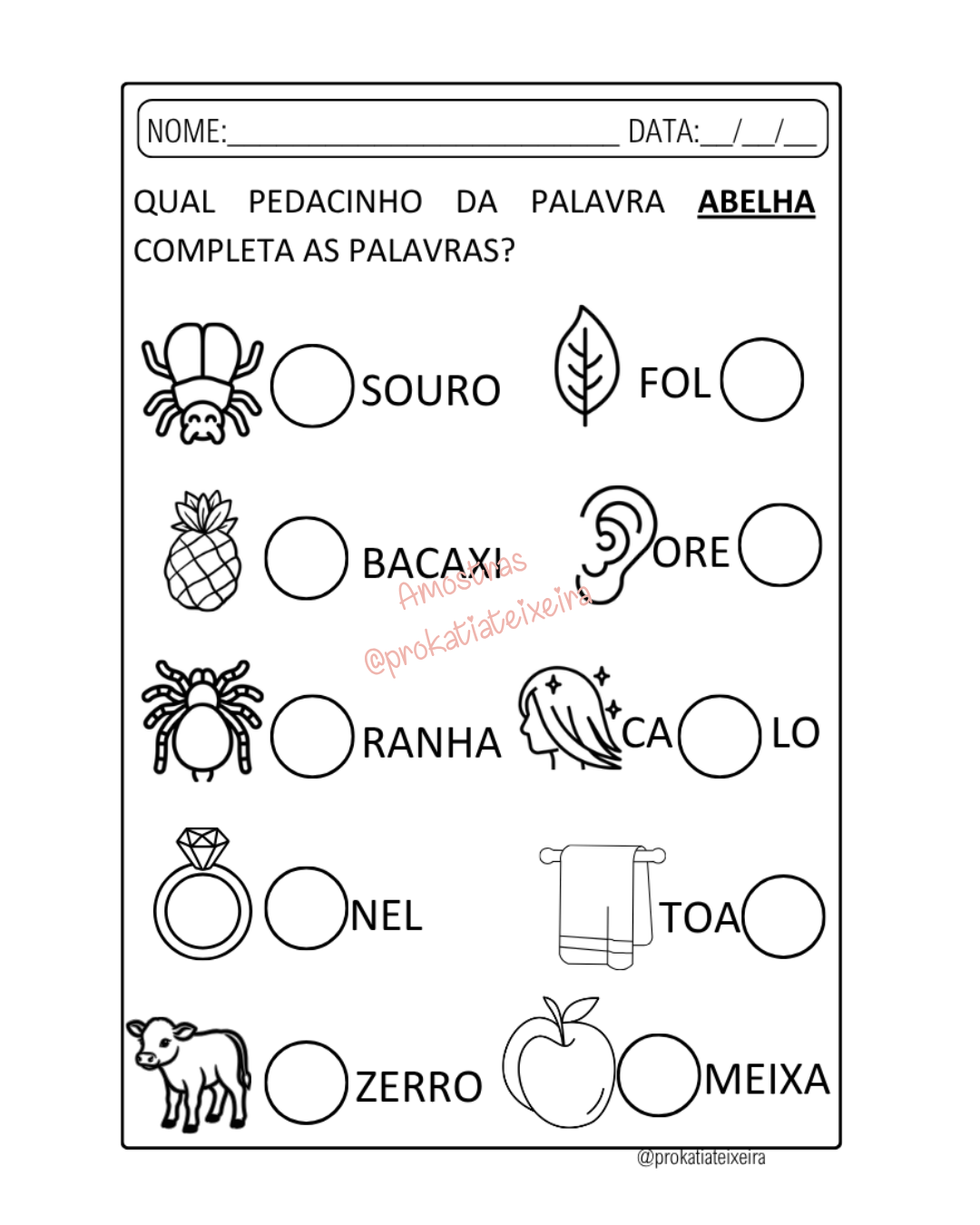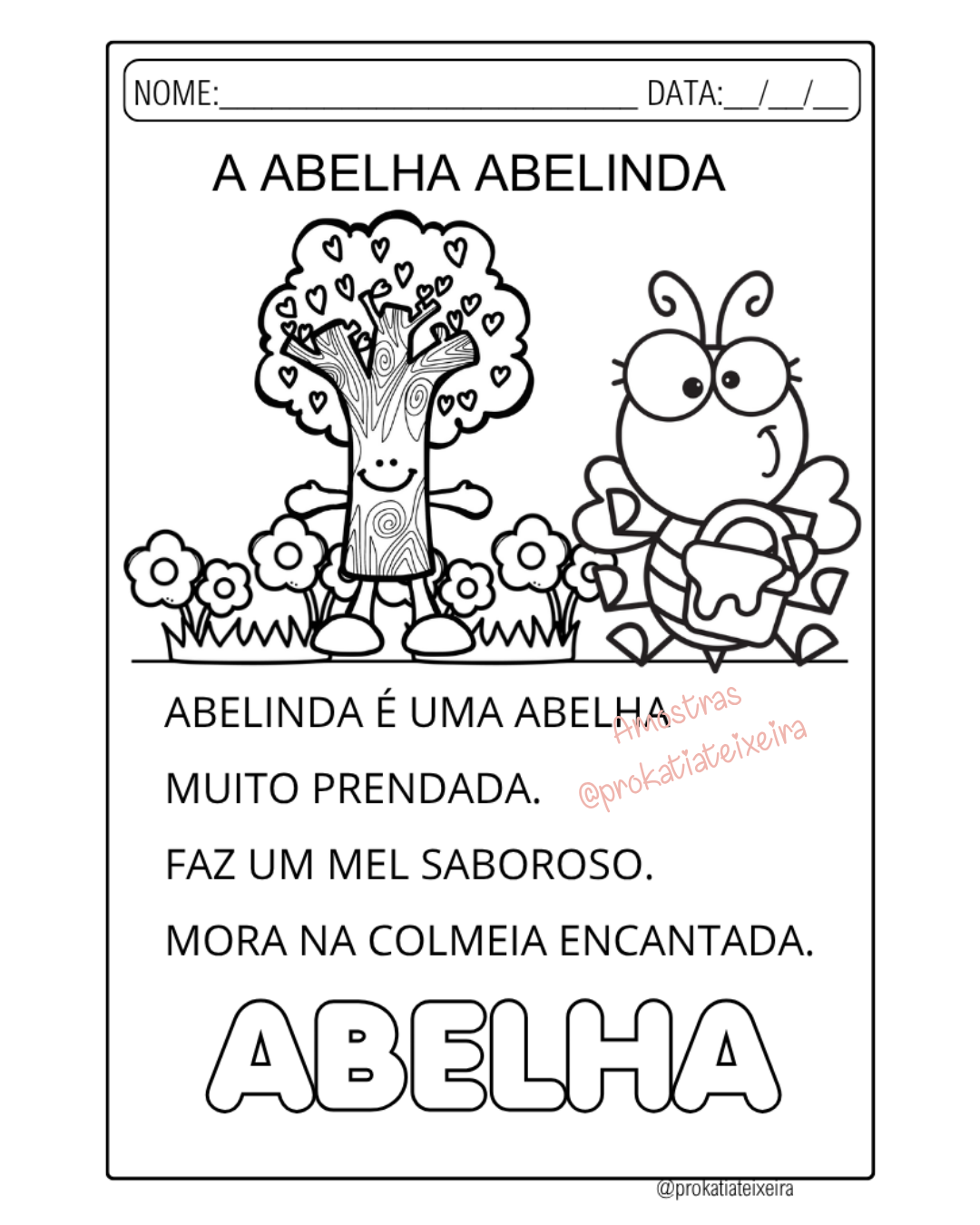 Trabalha leitura, interpretação e consciência silábica de forma prática e envolvente a partir da palavra “abelha”.