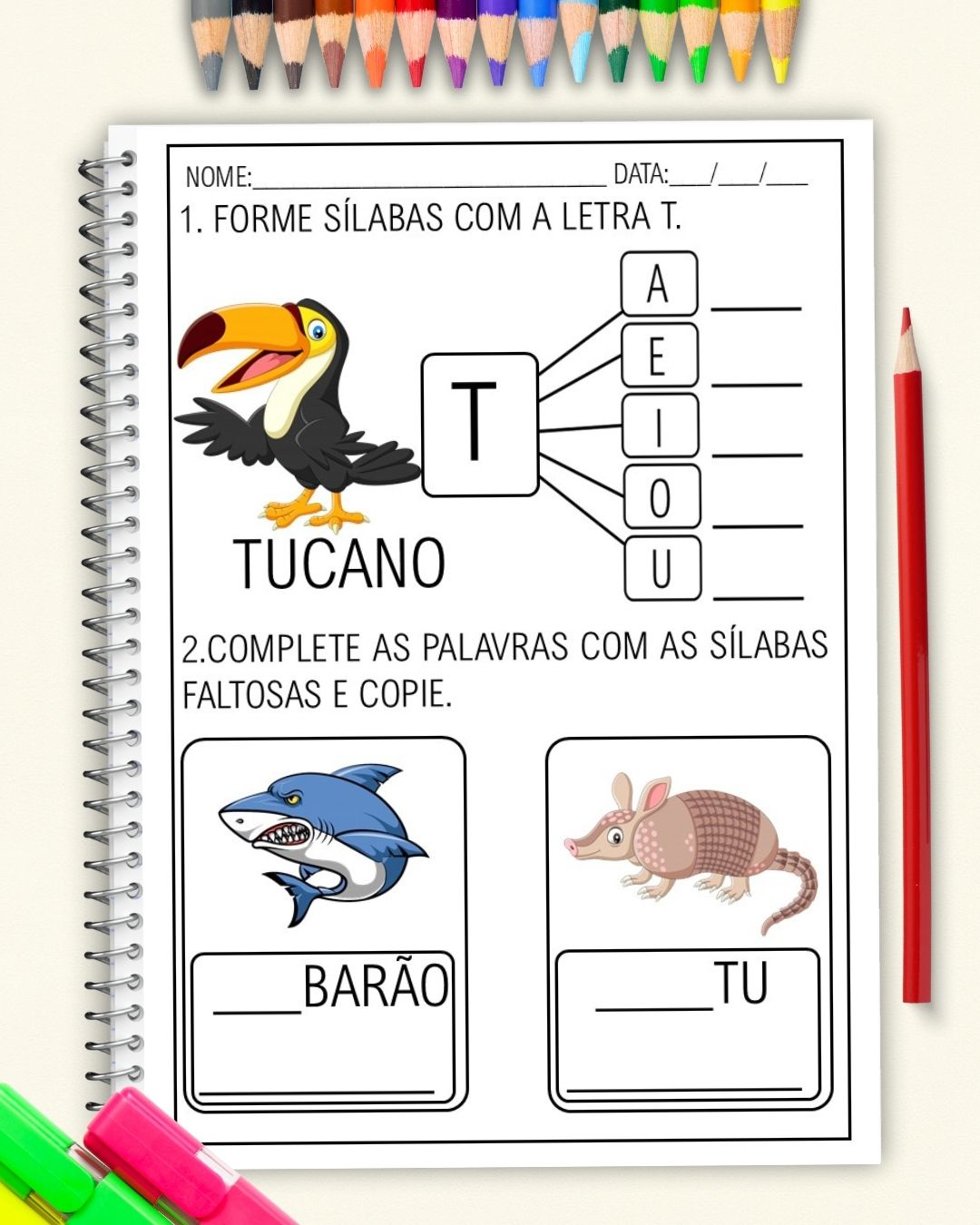 Material cuidadosamente desenvolvido para auxiliar na alfabetização, trabalhando cada consoante do alfabeto de forma estruturada e progressiva.